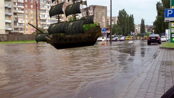 З приводу сьогоднішньої зливи у Луцьку і готовності міської влади долати наслідки таких природніх катаклізм уже жартують в соцмережах.