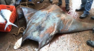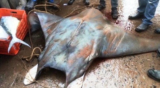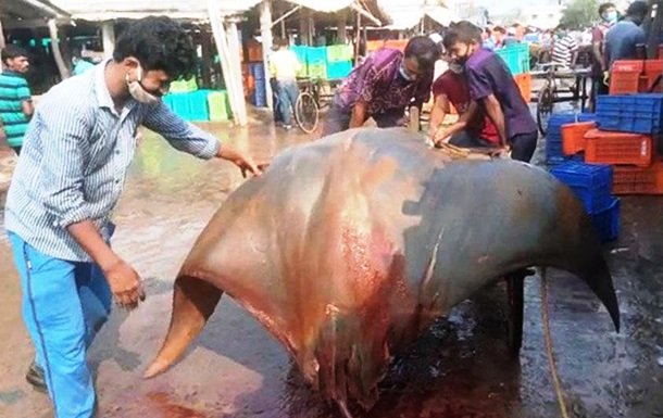 Біля берегів індійського штату Західна Бенгалія рибалки виловили 800-кілограмового ската. Сталося це, за їхніми словами, абсолютно випадково, коли вони вийшли в море рано вранці.