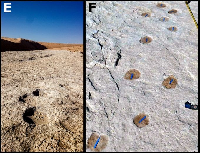Дослідники вважають, що сліди залишились з останнього міжльодовикового періоду. Тоді на території пустелі був вологий клімат, а люди та тварини вільно пересувались регіоном.
