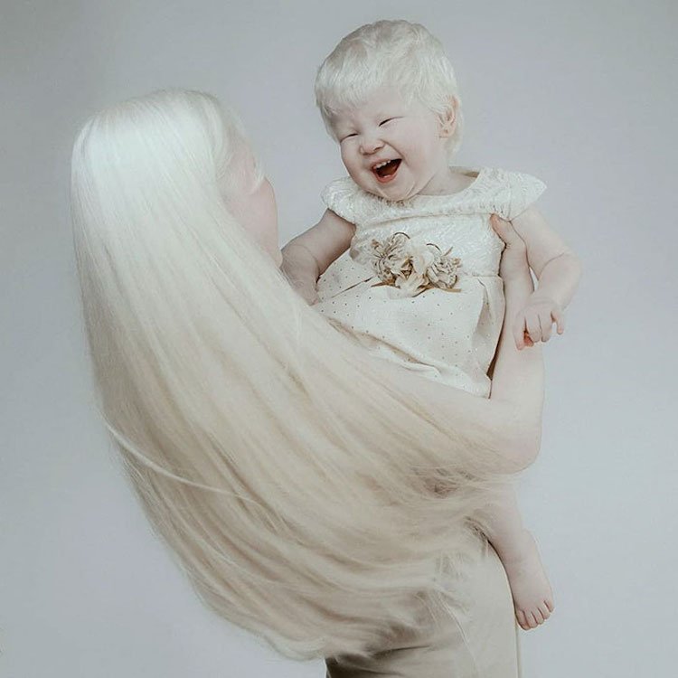 «Коли я народила дітей, я нічого не розуміла. Лікарі були шоковані. Тепер я розумію, що це альбінізм. Я не знала, що мені робити, як жити. Потім я дізналась, що серед моїх пращурів були люди з альбінізмом», – каже мама дівчаток Айман.