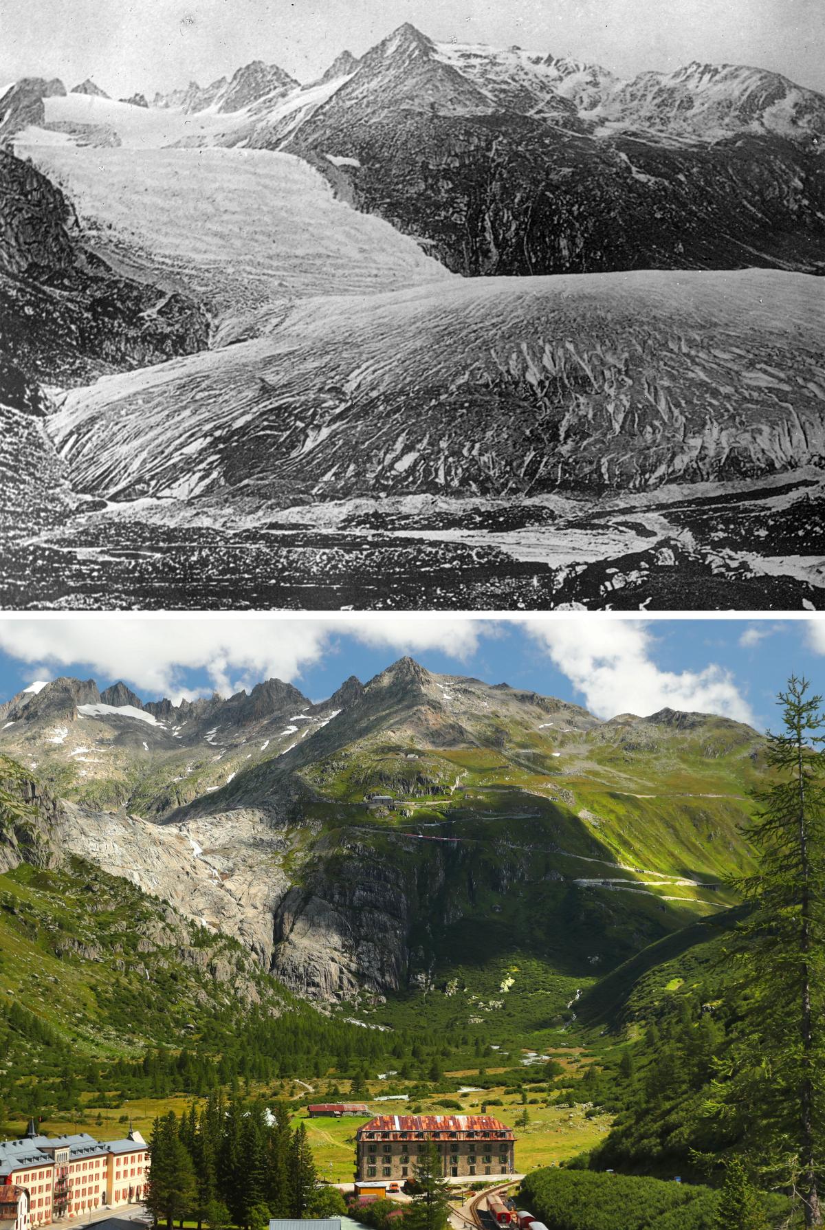 Де раніше у серпні-вересні вже були міцні льодовики, у наші дні можна побачити густі зелені ліси. За прогнозами вчених, льодовики в Альпах найближчим часом будуть танути дуже швидко і до 2050 року їх обсяг скоротиться приблизно наполовину при будь-якому сценарії глобальних кліматичних змін.