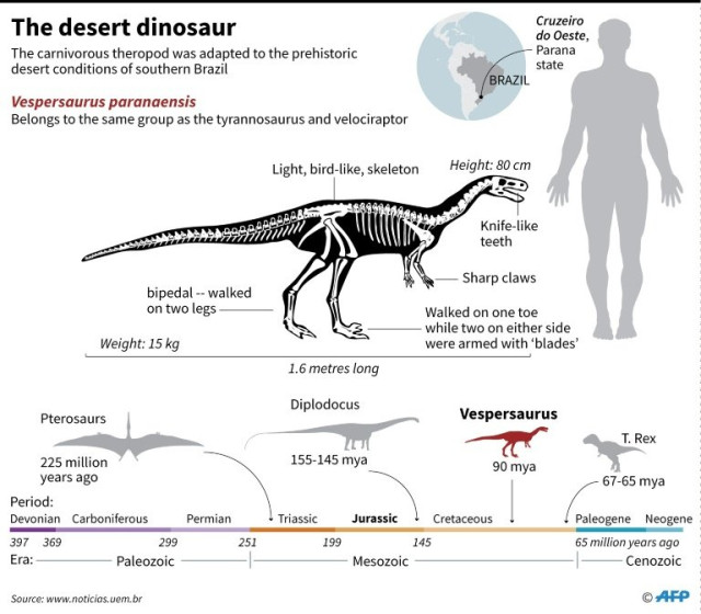 Вчені повідомили, що останкам 90 млн років і вони належать Vespersaurus paranaensis.