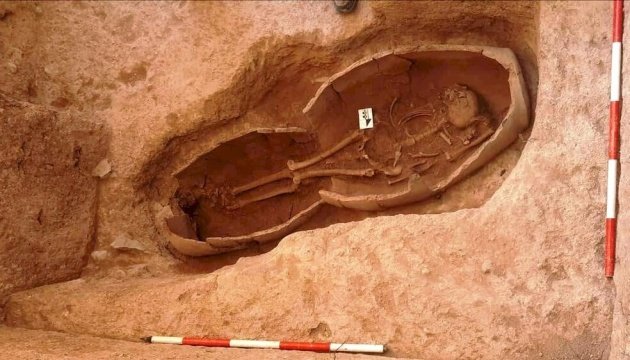 Іранські археологи виявили стародавній людський скелет у двох глечиках в гробниці у сільській місцевості в провінції Кордестан.