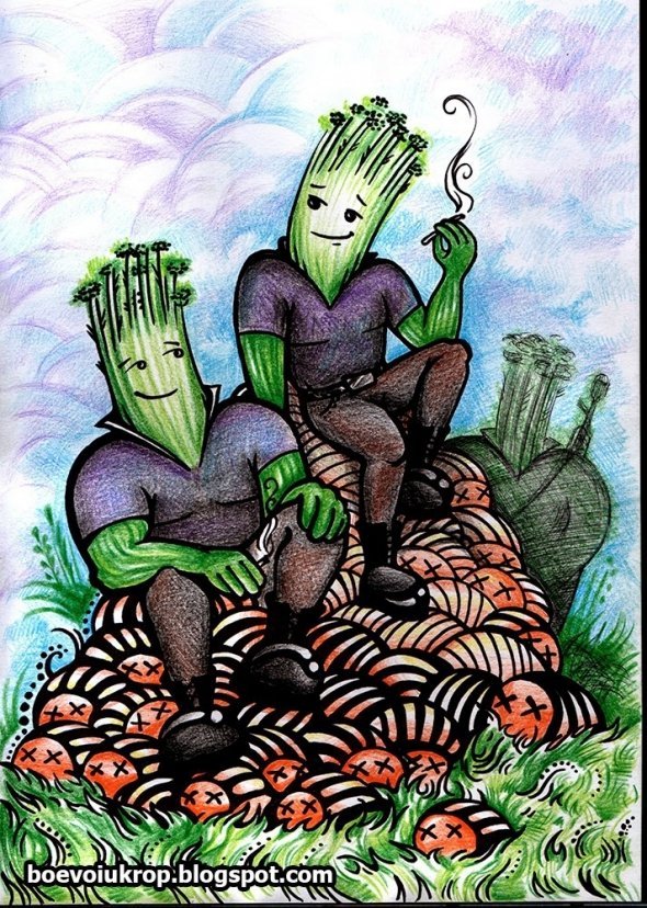 Позаяк прихильників "Новоросії" за їхні георгіївські стрічки вже встигли обізвати колорадами, то хід пішли вирізки та цитати з аграрних газет про те, як правильно кропом обсаджувати картопляні грядки, щоб відлякувати шкідників.