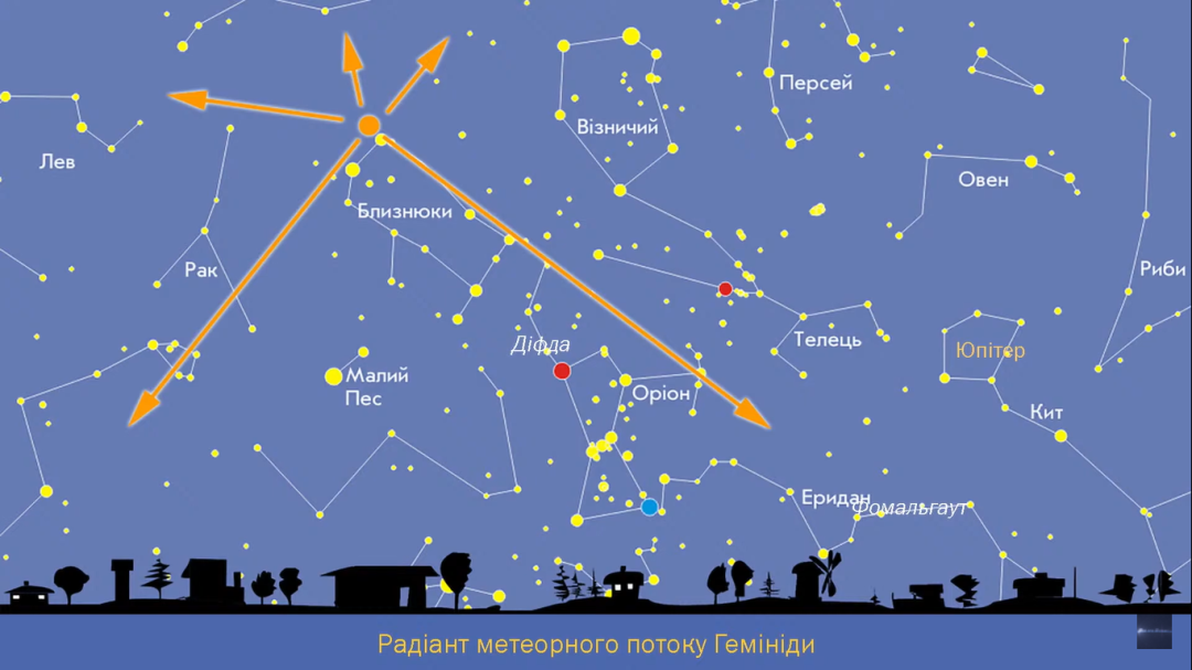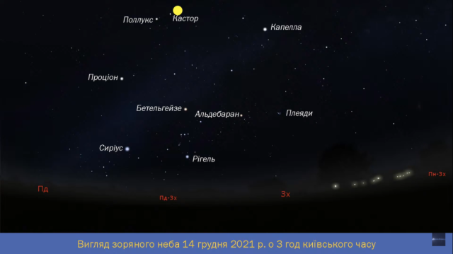 За словами вченого-астронома і популяризатора астрономії, виконувача обов’язків завідувача лабораторії методологічного та інформаційного забезпечення освіти і науки астрономічної (МІЗОН-А) Головної астрономічної обсерваторії Національної академії наук України Івана Крячка, «на 14 грудня 2021 року припаде пік метеорного потоку Гемініди, радіант якого розміщується неподалік зорі Кастор, що в сузір’ї Близнюків».