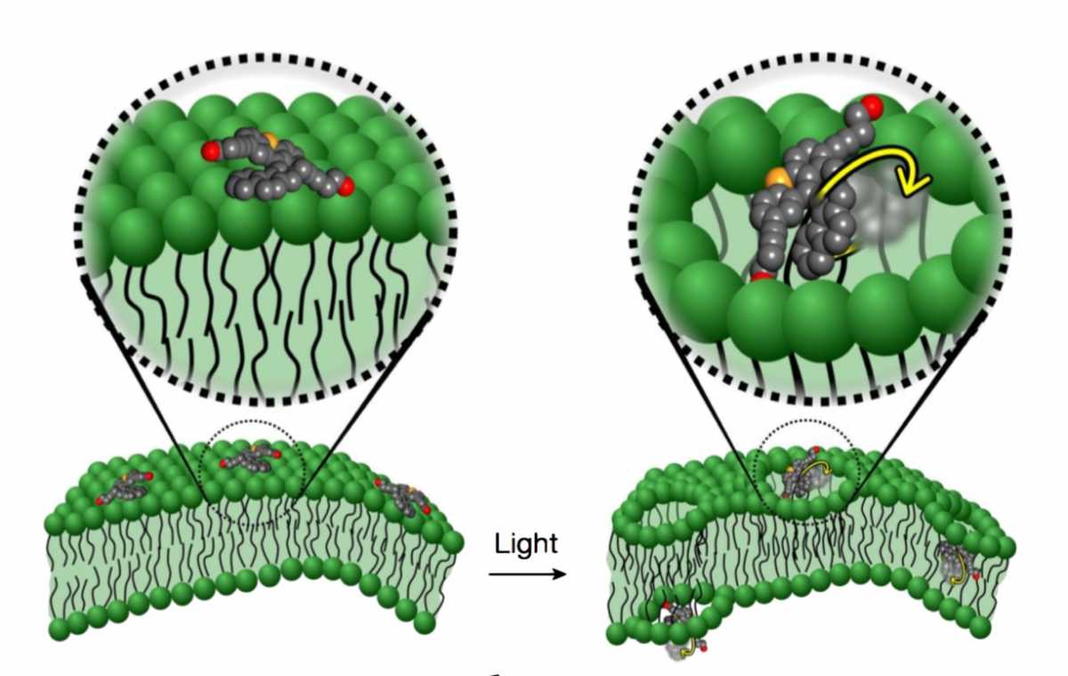 Молекулярна наномашина легко "пробурюється" крізь клітинну мембрану, залишаючи пори й призводячи до загибелі клітини.