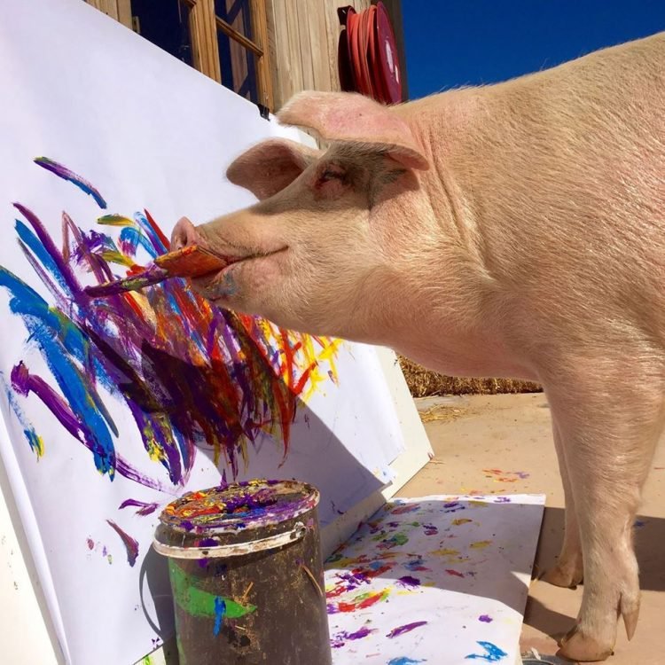 Джоанн запропонувала різні іграшки, щоб трохи її розважати. Серед цих іграшок було кілька пензлів. Левсон вирішила дати їй ще фарби і полотно аби подивитись, що зробить тварина. Свиня почала малювати, передає Gazeta.ua.