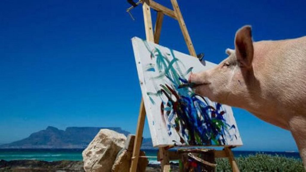 Південноафриканська правозахисниця Джоанн Лефсон забрала до себе свиню Пікассо, врятувавши його від прилавку кілька років тому. Привезла тварину на свою ферму. Виявилося, свиня вміє малювати.