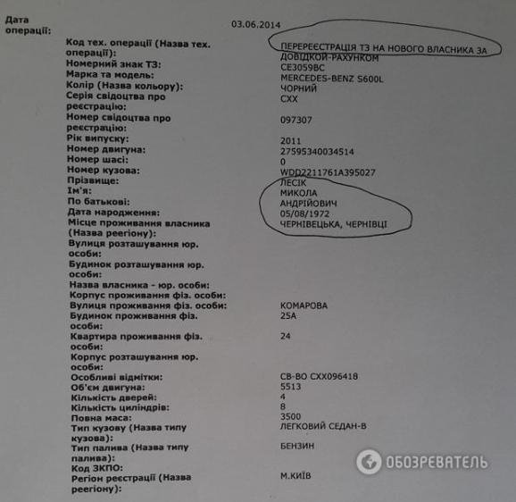 Як раніше з’ясусували ЗМІ, такий автомобіль належав компанії, що займалася автопарком Віктора Януковича, - "КИЇВУНІВЕРСАЛСЕРВІС". Також відомо, що 2 квітня 2014 року в Печерське райуправління надійшла заява від цієї компанії про незаконне заволодіння автомобілями, в тому числі – броньованим Мersedes Benz S600 Limousine Lang чорного кольору, об'єм двигуна - 5513 куб.см, 2011 випуску, держномер АА 0100 МК, номер шасі WDD 2211761А395027.