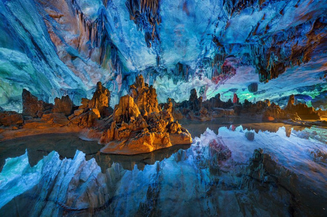 Фантастично мальовнича Печера очеретяної флейти є найбільшою і найкрасивішою з карстових печер Гуйліня, Китай. Завдяки унікальному підсвічуванні та відображенню в підземному озері створюється враження нереальності того, що відбувається!