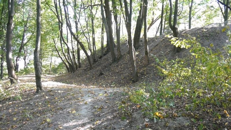 Найперше, що можна побачити – два ступінчасті пагорби. Недосвідчене око може прийняти їх за природні. Втім, Андрій Петраускас пояснює: тут чітко видно систему штучних укріплень, які, на думку істориків, зведені близько тисячі років тому, в часи Русі. Зараз схили пагорба вкриті деревами та чагарниками, тому на дослідження ділянки потрібен час та значні зусилля.