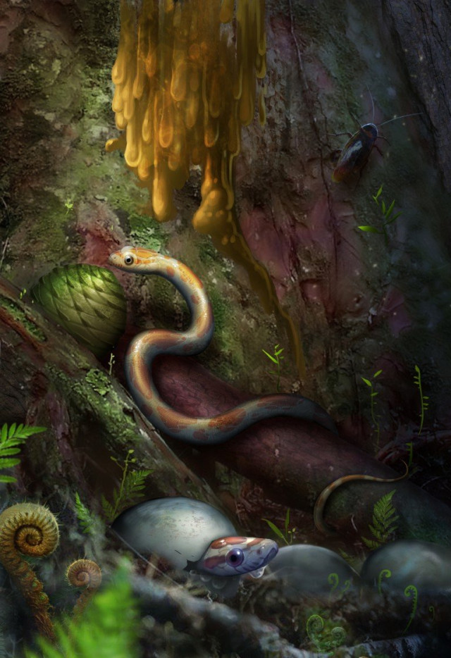 Палеонтологи описали найдавніших плазунів, що мешкали в лісі ще 100 млн років тому: бурштин зберіг новонароджену змію і шкіру, скинуту дорослою.