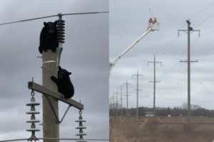 For those following along with this story, the bears have made it down safely 🐻 Definitely not a call our line workers go to every day. Let's hope these cubs learnt that hydro polls aren't the best place to snooze #breakingnews pic.twitter.com/bnmVda641F