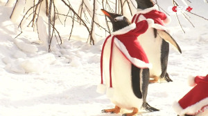 А ось пінгвінам затія не дуже сподобалася: одному з «Сант» на очі опустився ковпак, через що птах упав.