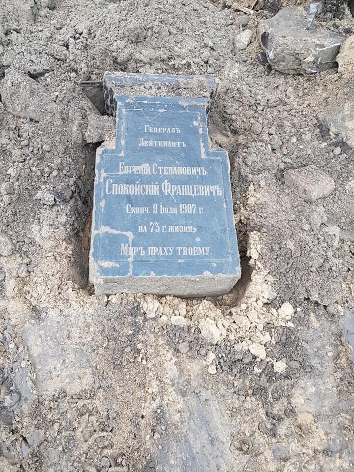 «18 грудня 2020 року бульдозеристи в Києві випадково натрапили на надмогильний надгробок генерала, який звільнив Болгарію від османського панування, вихідця з шляхетсько-литовської та козацько-старшинської української родин: Спокойський-Францевич Євгеній Степанович (15.03.1835 – 09.07.1907) – генерал-лейтенант», – написав дослідник історії України, Польщі та Туреччини.Він додав, що вчений-науковець, кандидат історичних наук з Інституту історії НАНУ Олександр Алфьоров виїхав на місце знахідки та зробив усе можливе для опису й консервації унікальної знахідки. «А тепер щось із нею треба робити», – уточнив Чухліб.Спокойські-Францевичі належали до шляхетських литовських родин. Родичались із козацькими родами Кулябок-Корецьких.