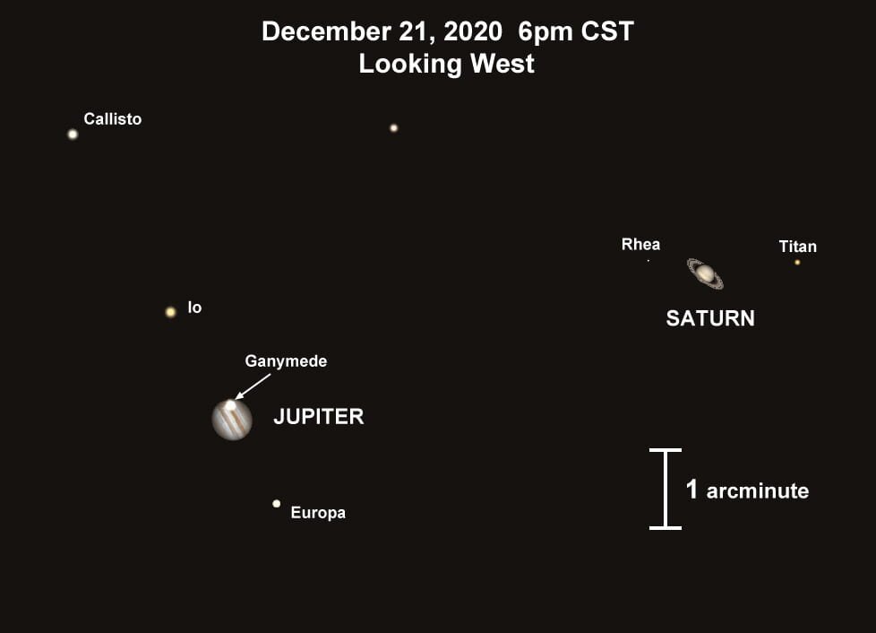 Вчені додали, що зближення планет триватиме в період з 16 по 25 грудня – у ці дні видима відстань між Сатурном і Юпітером відповідатиме одній п’ятій діаметру Місяця. Тобто, неозброєним оком планети будуть виглядати як одна точка.