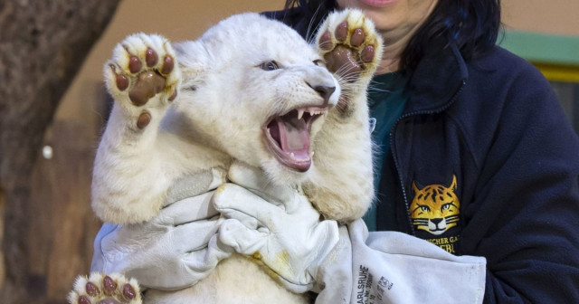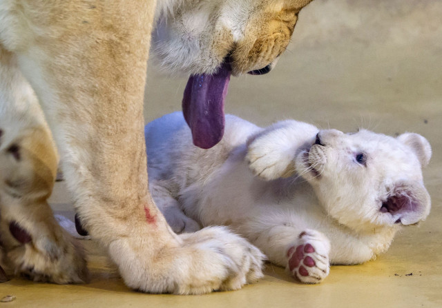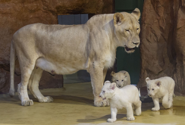 У зоопарку німецького міста Магдебург показали трьох білих дитинчат левиці Кіари.