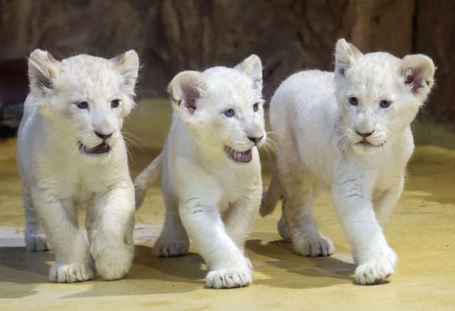 Світ вражає: У німецькому зоопарку показали трійцю рідкісних білих левенят. Фото