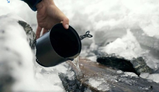 Льодорубом розкололи лід навколо лижі, але повністю звільнити її не вдалося через ризик пошкодити. У цьому допомогла вода, яку підігріли на газовій плиті.