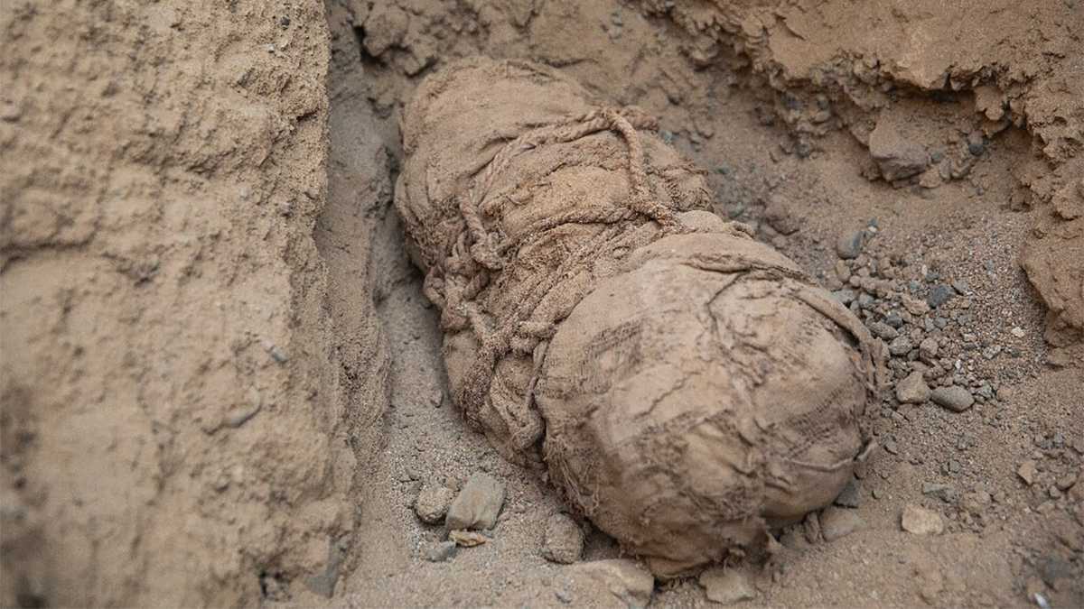 Якщо мумія дорослого чоловіка, яку знайшли раніше, здавалася моторошною, то шість муміфікованих дітей біля неї – це ще страшніше. Усі тіла були загорнуті у тканину й розміщувалися біля входів в усипальницю. Також неподалік були виявлені залишки немуміфікованих тіл людей.