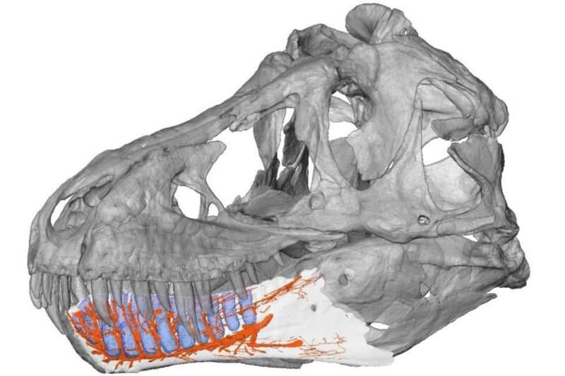 Палеонтологи взяли щелепи тиранозавра, щоб провести їм комп’ютерну томографію. Результати порівняли зі щелепами інших динозаврів та сучасних крокодилів.Виявилося, що нервово-судинний канал хижака мав дуже складні відгалуження. Така складність у розподіленні судин зустрічається у сучасних крокодилів та деяких птахів, які використовують дзьоб для пошуку їжі. Це свідчить, говорять вчені, про тактильну чутливість зубів, що робило б нижню щелепу тиранозавра важливим органом чуття.