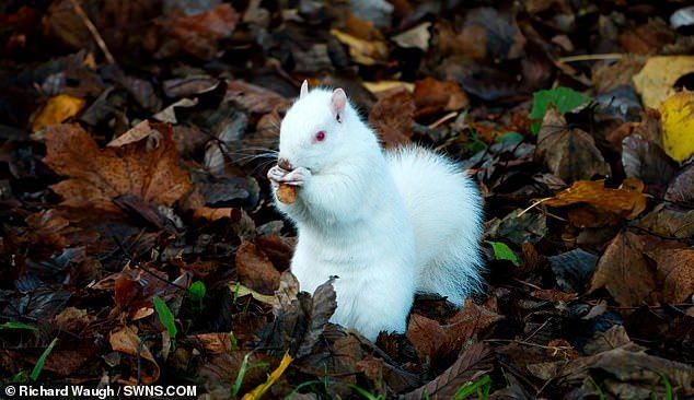 У шотландському Единбурзі розробнику програмного забезпечення Річарду Воу вдалося зазнімкувати дуже рідкісну білосніжну білку-альбіноса.