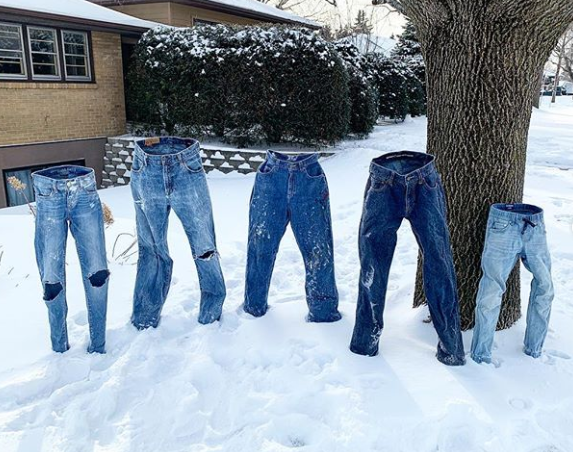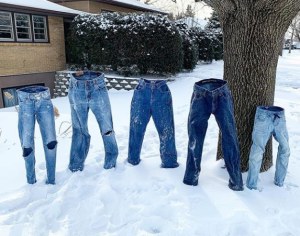Із замерзлих джинсів американці вибудовують різні сценки.