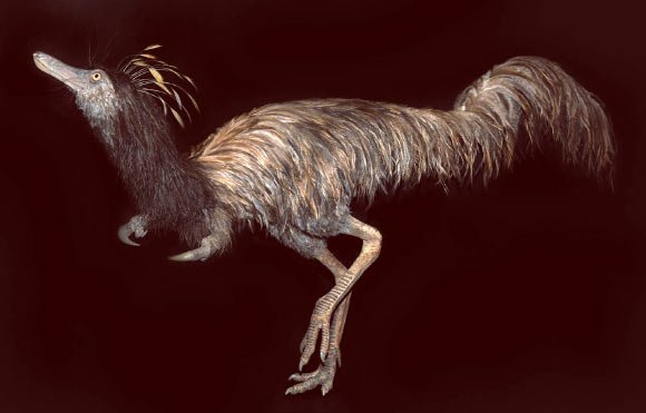 Вони мали виключно короткі передні кінцівки з величезним кігтем, дуже довгі задні лапи, морду, наповнену крихітними зубами, і тіло, покрите пір’ям.