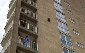 В американському місті Оушен-Сіті в штаті Нью-Джерсі єнот заліз по прямовисній стіні на висотну будівлю і впав на землю з висоти, приблизно, дев'ятого поверху. Кадри з небезпечним стрибком тварини розмістили очевидці в соціальних мережах.