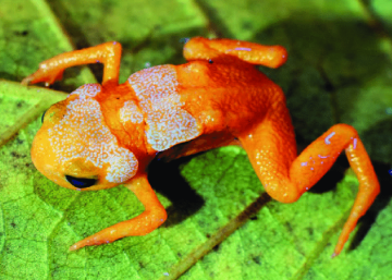 Як повідомили експерти, седлоносна, або гарбузова жаба Brachycephalus ephippium – це крихітна, менше 2 сантиметрів у довжину, отруйна жабка.