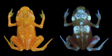 Вивчаючи поведінку цих жаб у шлюбний сезон, вчені зробили дивовижне відкриття. Висвітлюючи закоханих жабенят ультрафіолетовою лампою, зоологи виявили, що спини амфібій яскраво світяться.