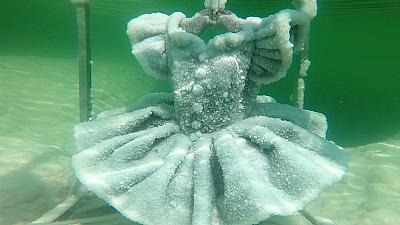 Авторка занурює речі, які використовуються як каркаси, у воду і чекає, поки вони перетворяться на арт-об'єкти за допомогою солі, що знаходиться в морі у величезній кількості. Так, балетна пачка перетворилася в 200-кілограмову скульптуру, що складається з куль соляних кристалів.