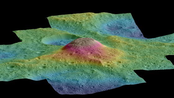 На думку вчених, які проаналізували дані, зібрані Dawn, гігантський пік Ахуна виник, коли краплина солоного кам’янистого бруду з глибин Церери пробила льодяну кору цієї карликової планети й замерзла.