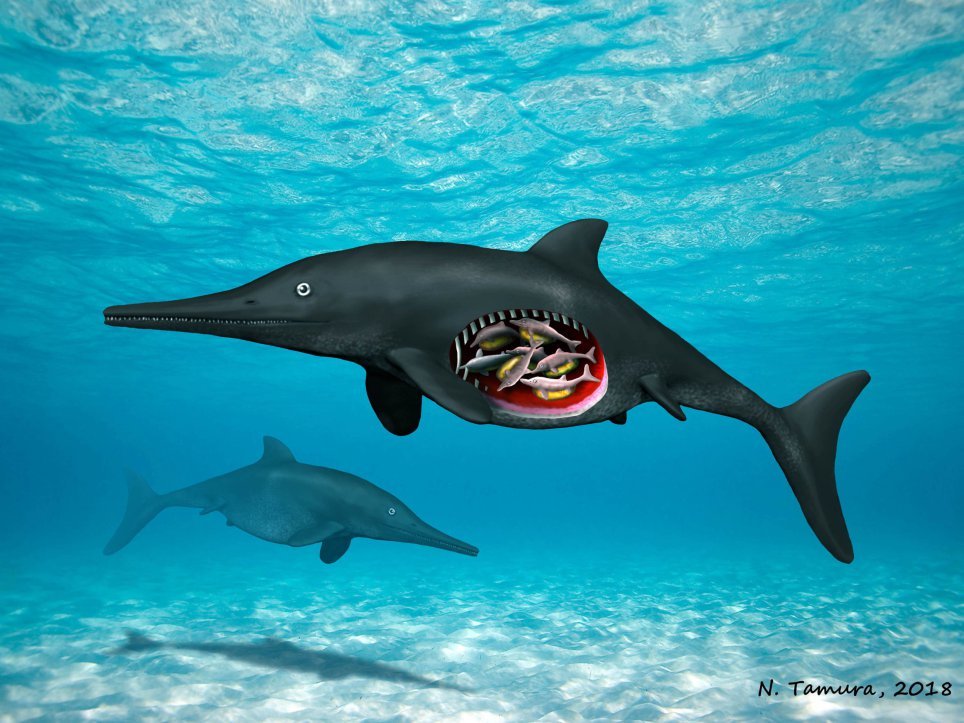 Зазначається, що дельфіноподібні іхтіозаври були м'ясоїдними рептиліями, які домінували в юрських морях і народжували потомство, а не відкладали яйця.