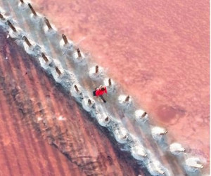 в минулому році вирішив з сімєю поїхати туди - не доїхав. Величезні вантажівки розбили груновку до таких колій, що тільки джипами люди ризикують їхати, і по полю, і по залишкам дороги. А це десь 3 км від асфальту (село Григорівка). І рожевий відблиск - у сонячну погоду.