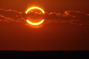 Таке явище виникає під час сонячного затемнення, коли Місяць перебуває найдалі від Землі, тоді супутник нашої планети не повністю затуляє Сонце і навколо нього утворюється немов би кільце вогню.
