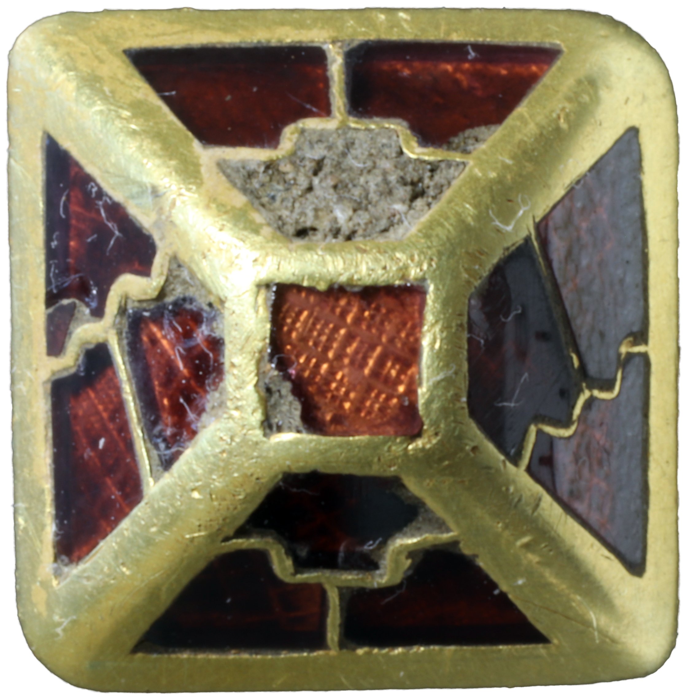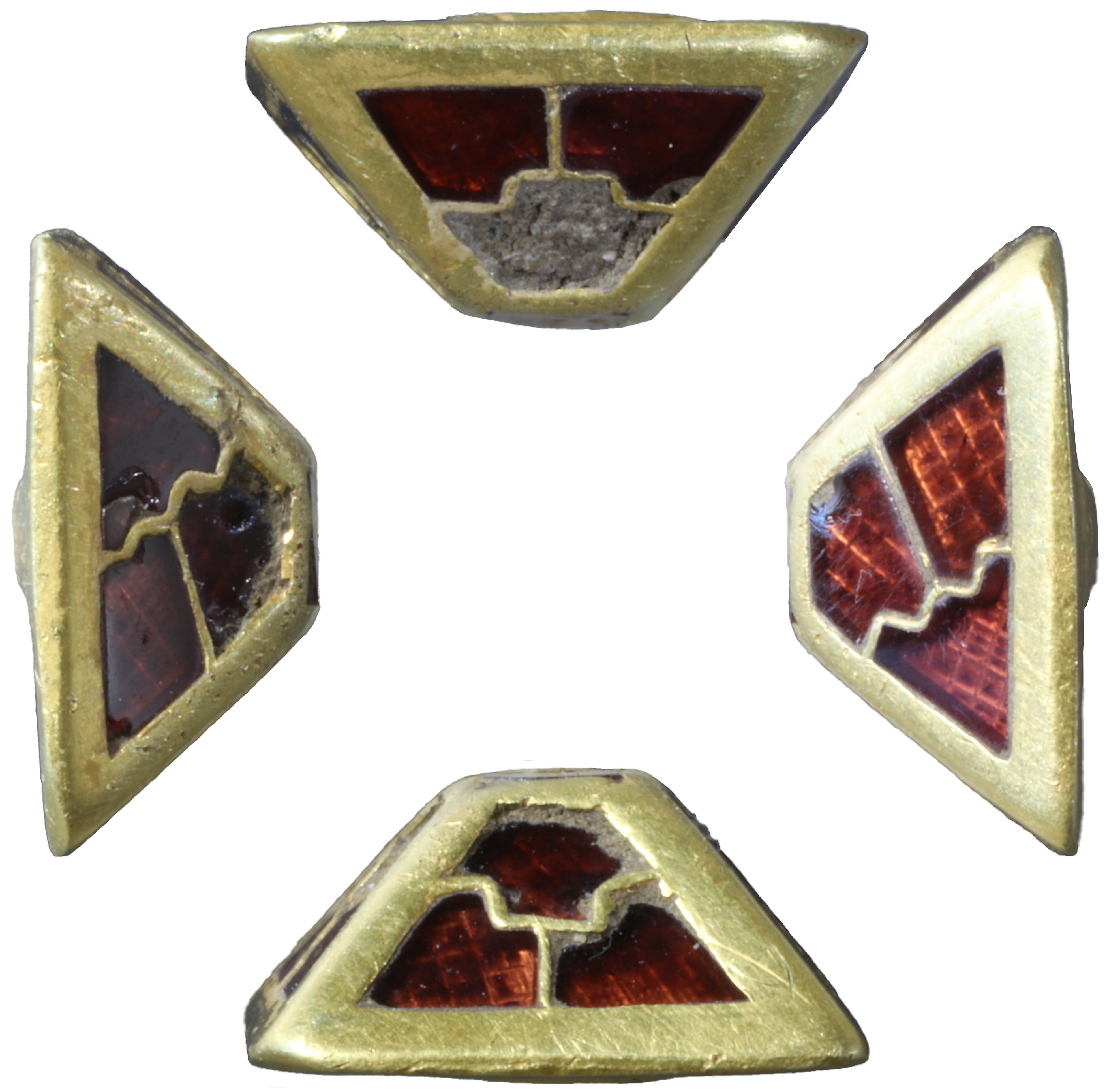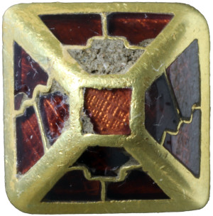 Маленька піраміда розміром 12 мм x 11,9 мм має квадратну підставу інкрустовану з усіх чотирьох сторін трьома перегородчастими гранатами у двох різних стилях на протилежних сторонах: ступінчаста Т-подібна форма і діагональ з хвилястою поперечиною.