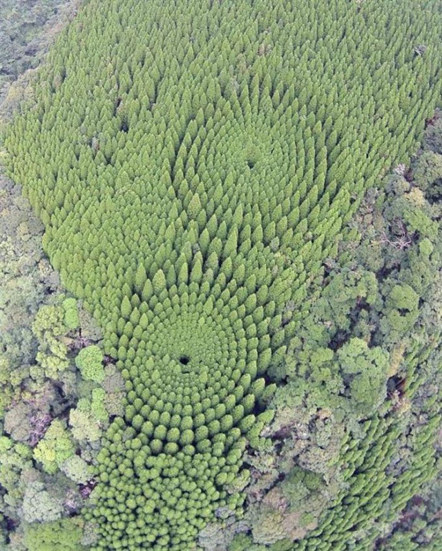 У лісі японської префектури Міядзакі, Нікінан знайшли загадкові геометричні фігури, які формують зрілі дерева японського кедра.