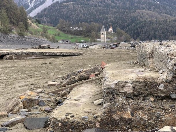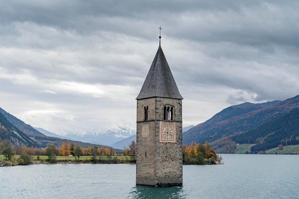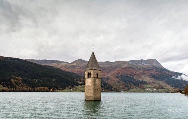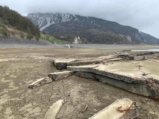 Відзначається, що штучне озеро Резія осушили на час ремонтних робіт і на його дні виявили понад 160 будинків. Воно міститься в Південному Тіролі, альпійському регіоні, що межує з Австрією і Швейцарією.
