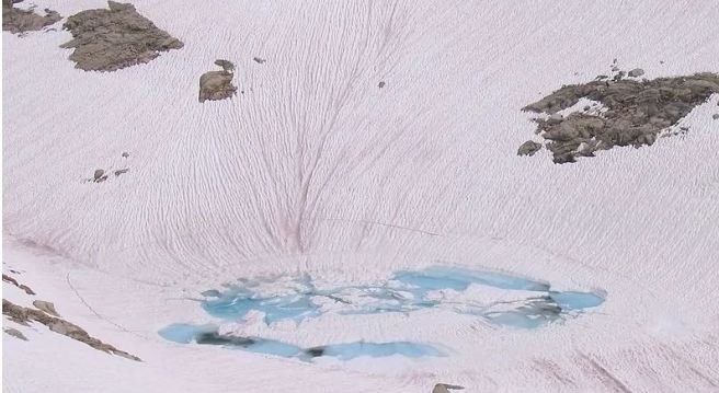 Льодовики в горах Італії стають рожевими внаслідок розмноження водоростей, що прискорюють танення льоду.