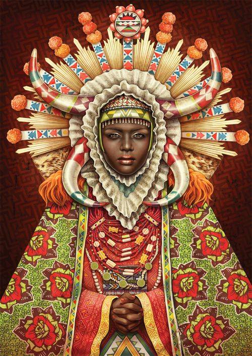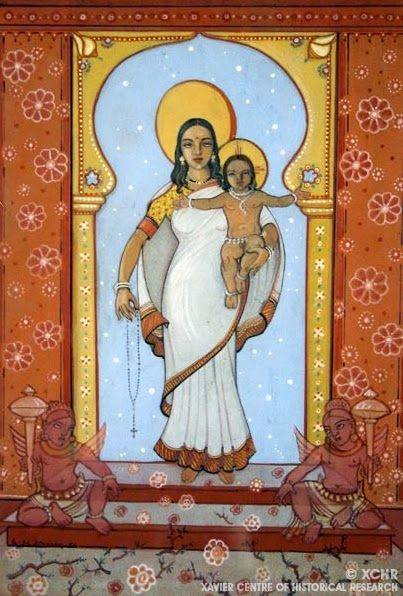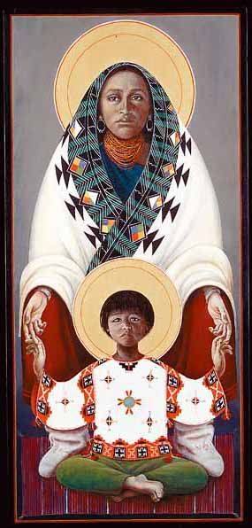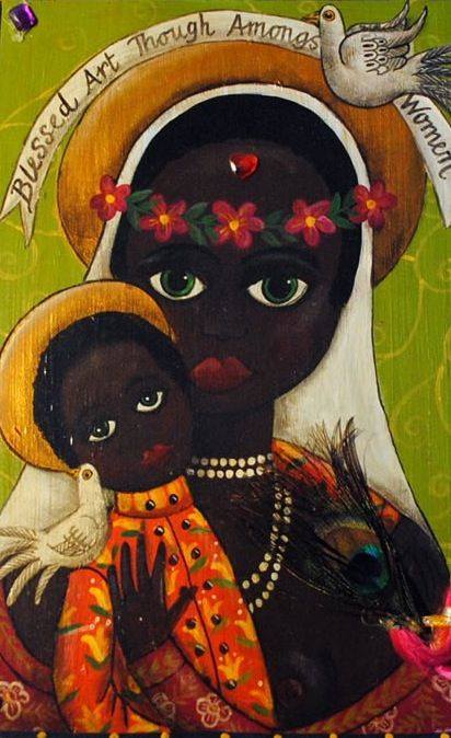 Нічого дивного. Як люди із різних частин світу уявляли собі Богородицю - так і малювали. Гріха немає. У нас теж були козацькі образи із Ісусом Христом у вишиванці.