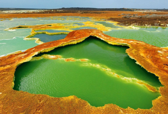 Одне з таких місць – озера Східно-Африканської рифтової долини, розташовані на території Ефіопії. Вода в них надзвичайно кисла через вулканічні гази, які пробиваються крізь дно (pH тут може опускатися до 0); вода в них також дуже солона (концентрація солі може доходити до 50%) і гаряча – через вулканічну активність і гарячі джерел.