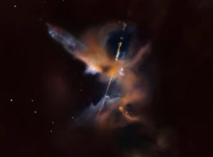 «Небесні світлові мечі» утворюються, коли новонароджена зірка випускає струмені газу. Ці потоки взаємодіють із зовнішнім пилом та газом на швидкості кілька сотень кілометрів в секунду. В результаті можна спостерігати воістину зачаровує космічне шоу.