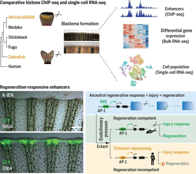 У риб ці послідовності були практично однакові, але у людей виглядають зовсім інакше. Додаткові експерименти підтвердили їх роль. Видалення у риб RRE або заміна на людські порушувала їх здатності до відрощування ампутованих плавників.