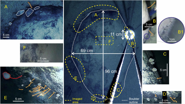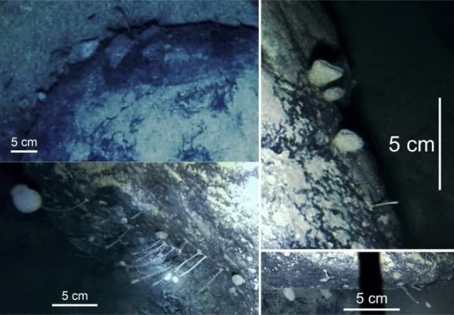 Там на місці мулистих відкладень дослідники натрапили на кругляк і опустили на тросі камеру й побачили на дні незвичайні нерухомі істоти. Зовні вони були схожі на губок.