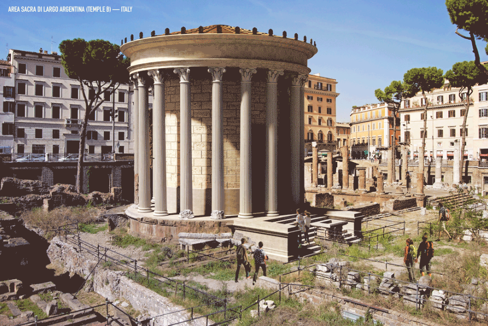 У їх числі реконструйованих об'єктів - Парфенон, мексиканська піраміда Сонця і храм Юпітера в Помпеях.