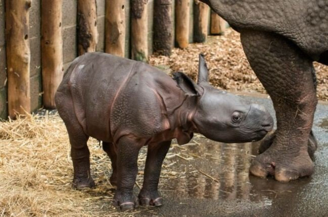 У сафарі-парку «Вест-Мідленд» вперше за 47 років народилося дитинча індійського носорога.