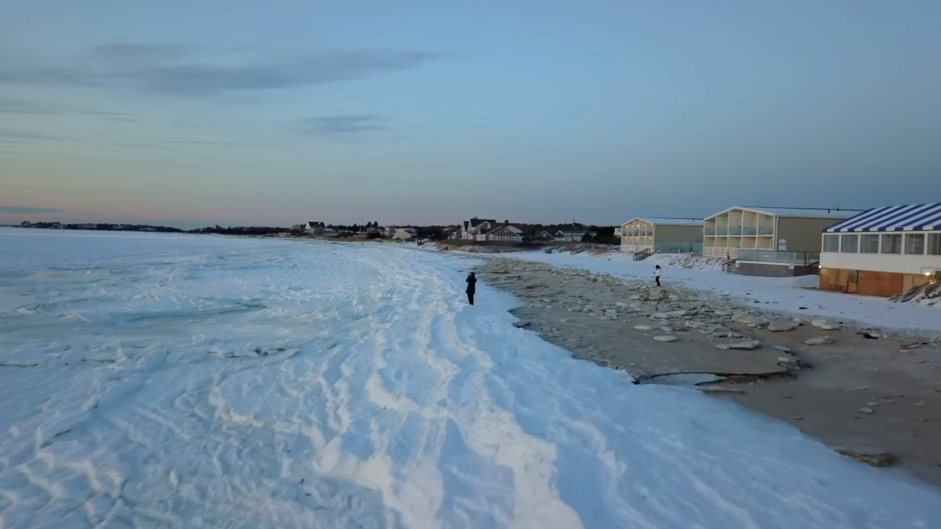 Як пише видання Mashable, у неділю користувач YouTube Райан Кенті опублікував відео замерзлого океану біля пляжу Old Silver Beach, який розташований поруч із будинком його бабусі.
