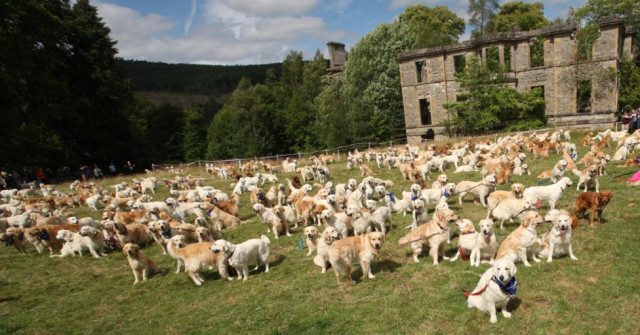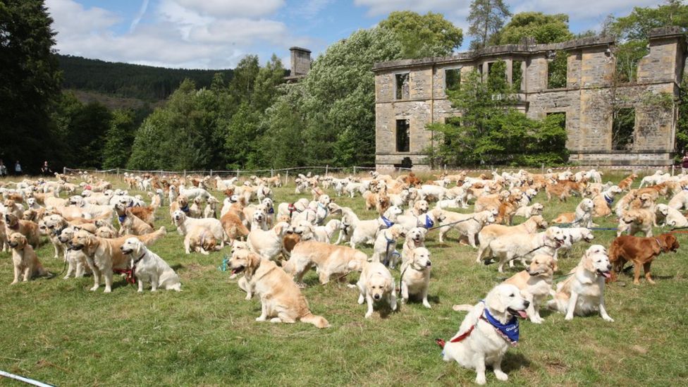 Цього тижня Клуб золотистих ретриверів Шотландії організував масове свято золотистих ретриверів та їхніх власників у маєтку.