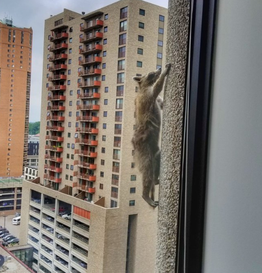 Світ вражає: Єнот-альпініст підкорив хмарочос